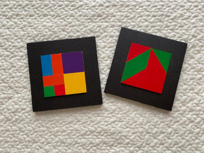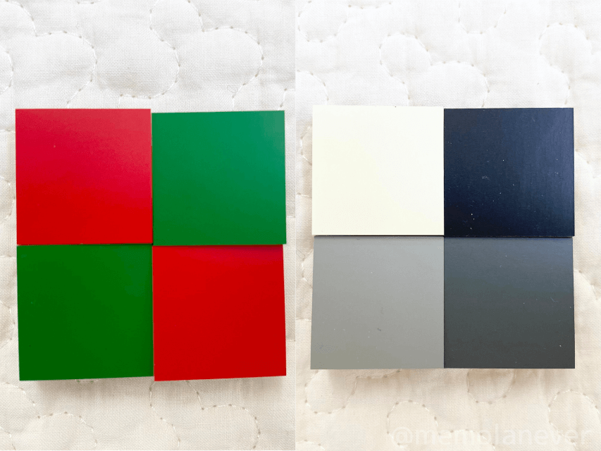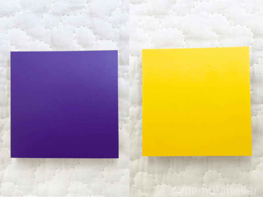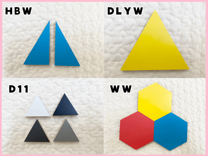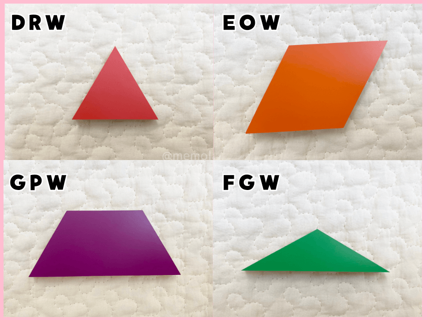我が家はいまのところ四角の正方形(A)と二等辺三角形(C)の原色補色はこれにがさっと入れて使うことで落ち着いています。