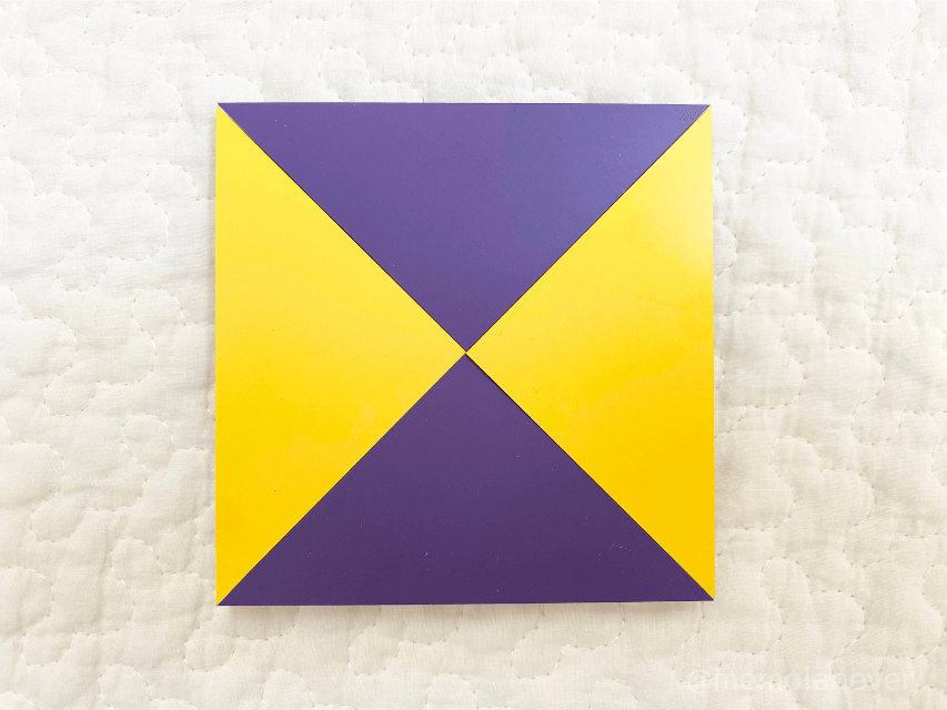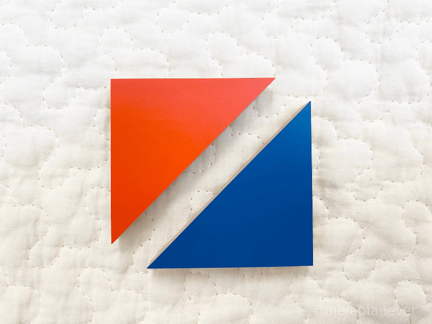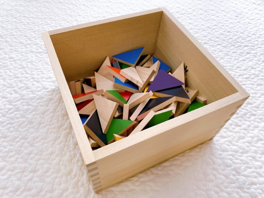 カラーモザイクの形は直角二等辺三角形のみで、色彩感覚を育むのに特化したものになっています。