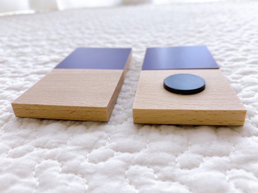 マグネットモザイクは裏面に磁石が貼ってあるので裏面を使うことができず積み木と組み合わせて遊ぶのには向きません。