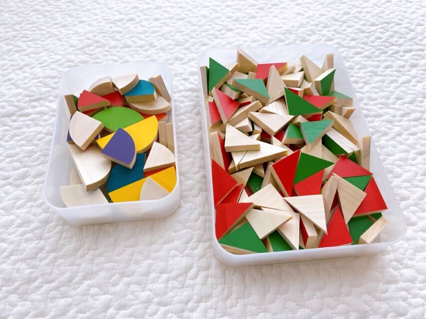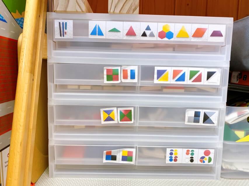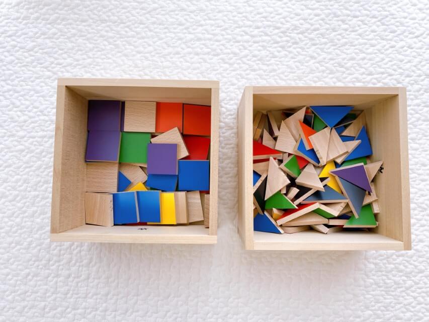 年齢が小さい時にはまずは四角だけ用意してあげると積み木と組み合わせやすいです。