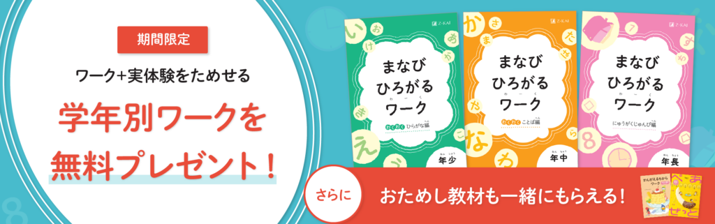 Z会 幼児コースは1回の資料請求で全コース無料でお試しができます。